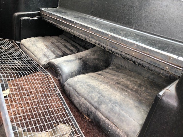 While the interior is far from perfect, the rear seat is the most troubling. It looks as though the backseat has a layer of mold across it. The black carpeting is faded out, the driver’s seat ripped and the radio missing. Speaker hole openings are visible in the back of the fastback area. A good cleaning before taking these photos would have helped make the case.