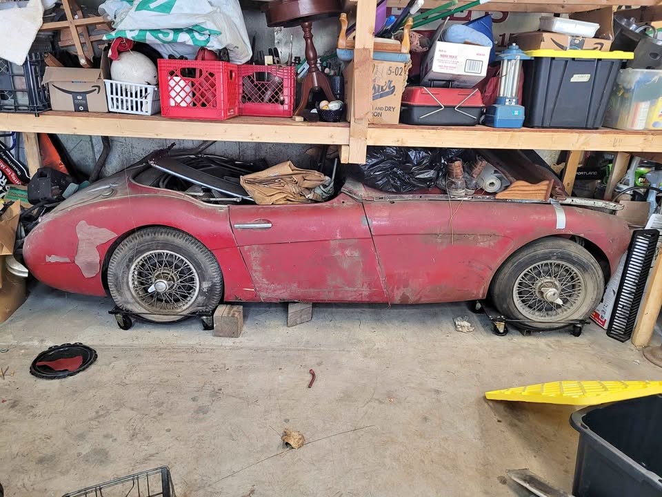 Thanks to Barn Finds reader Zappenduster for the find. I still have the iconic scene from Father of the Bride II burned in my brain where Steve Martin’s character is this close to losing it and chooses to escape wedding preparation hell but ripping off to the grocery store in his Mark II Austin Healey 3000. It’s a fantastic scene showing us just how important a vehicle is as a means of escape. In the case of this 100-6, the only escaping it’s done at this point is moving out from underneath the storage racks that have been its home for many years. The good news is that the Big Healey has clearly remained dry and seemingly mostly rust-free.