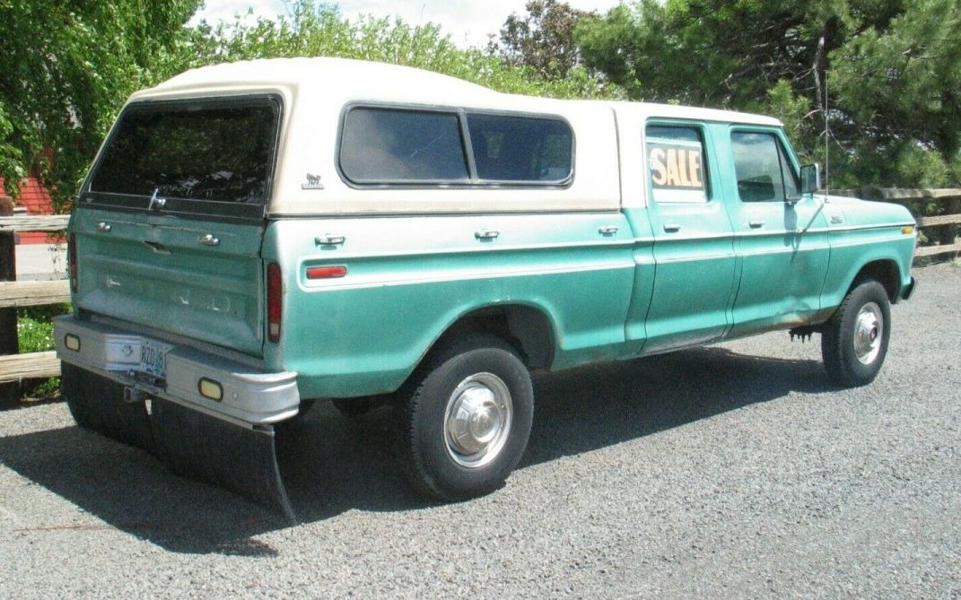 When the first “light trucks” were built they were designed for work and featured stiff suspensions with little creature comforts. When trucks started to become family haulers, you saw the trend of 4-door pickups become the norm. Heck, if you want a single-cab work truck now, you almost have to special order it. Back in the 1960s and 70s, “crew cab” pickups were just that…Made for a crew of people. Whether it was a logging crew, construction crew, Forest Service crew, or some other group, they were designed to haul six adults to work. That’s what makes crew cabs of this era so rare. First, there wasn’t a lot made compared to their single-cab cousins. Second, they were worked hard. This particular Ford is from 1977 and can be found here on eBay with a current bid of $8,600. Currently located in Madras, Oregon, the ad doesn’t indicate where the truck spent its life, but I can imagine it loaded with lumberjacks smelling like wood chips and chainsaw gas high in the old-growth Oregon wilderness. How about you? Let’s take a closer look at this awesome crew cab.