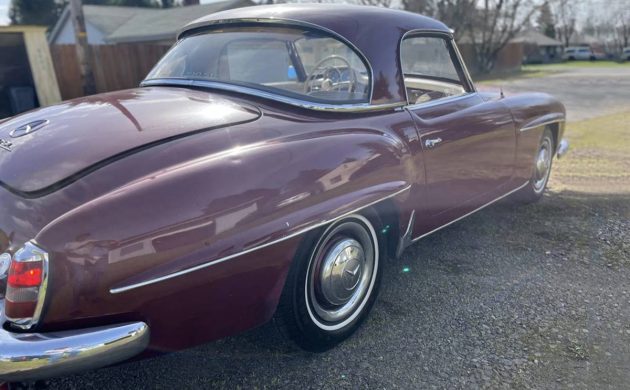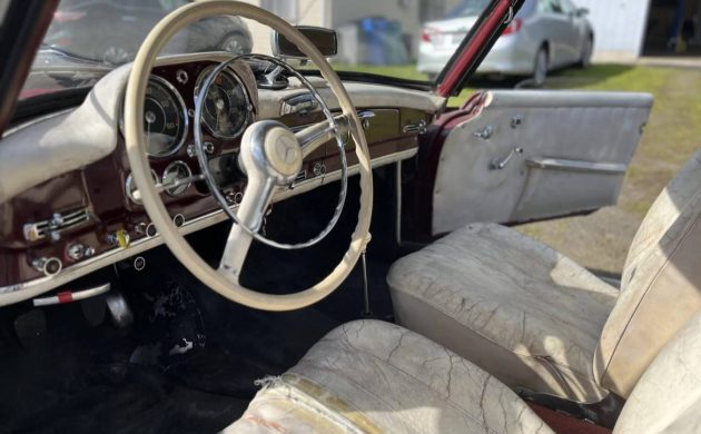 You occasionally see reports of the 1.9-liter M121 inline-four (good for 104 horsepower and 105 lb-ft of torque) needing a rebuild or at the very least, a top-end refresh; however, these are not complex engines, so even in a worst-case scenario, I wouldn’t overthink the purchase even if the motor needs some work. The matching factory hubcaps with the painted centers underneath is an OEM-correct detail even if the color turns out not to be (a respray wouldn’t surprise me at this point.) While I would like to see the seller get more for the car, you can’t fault the first person who’s there with a trailer today and $19,000 in hand, ready to bring this 190SL home.