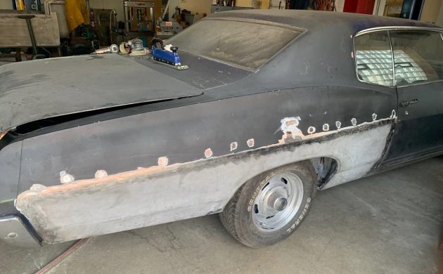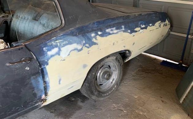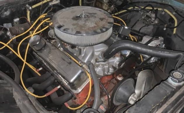 We assume the original color of this Caprice was black, and the interior (which needs work) appears to be dark blue. 70,000 miles are on the odometer, but it could easily also be 170,000, depending on how long this Chevy has been dormant (the collective dust says it’s been a while). Both rear quarters have been repaired and have filler material, and some of the floorboards have had patches inlaid. According to the seller, the work was professionally done, and extra panels were provided to do more.
