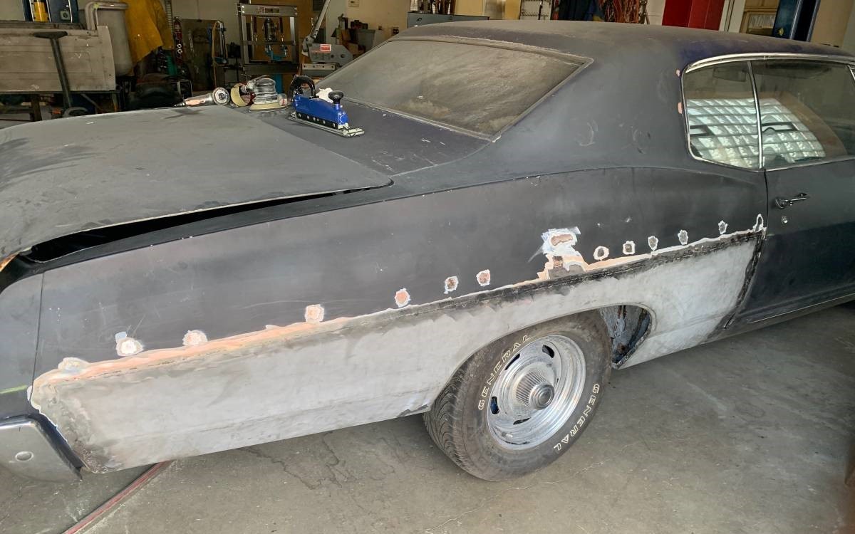 We assume the original color of this Caprice was black, and the interior (which needs work) appears to be dark blue. 70,000 miles are on the odometer, but it could easily also be 170,000, depending on how long this Chevy has been dormant (the collective dust says it’s been a while). Both rear quarters have been repaired and have filler material, and some of the floorboards have had patches inlaid. According to the seller, the work was professionally done, and extra panels were provided to do more.