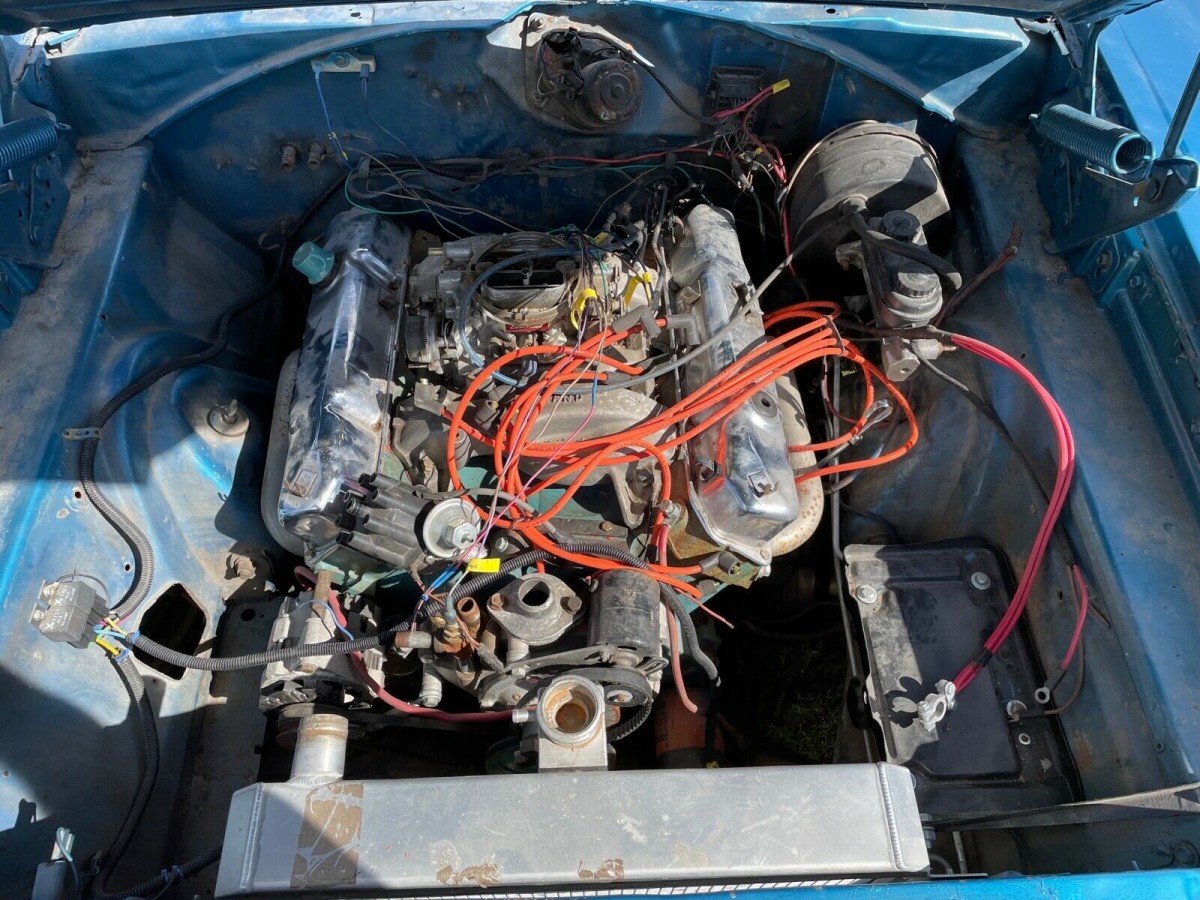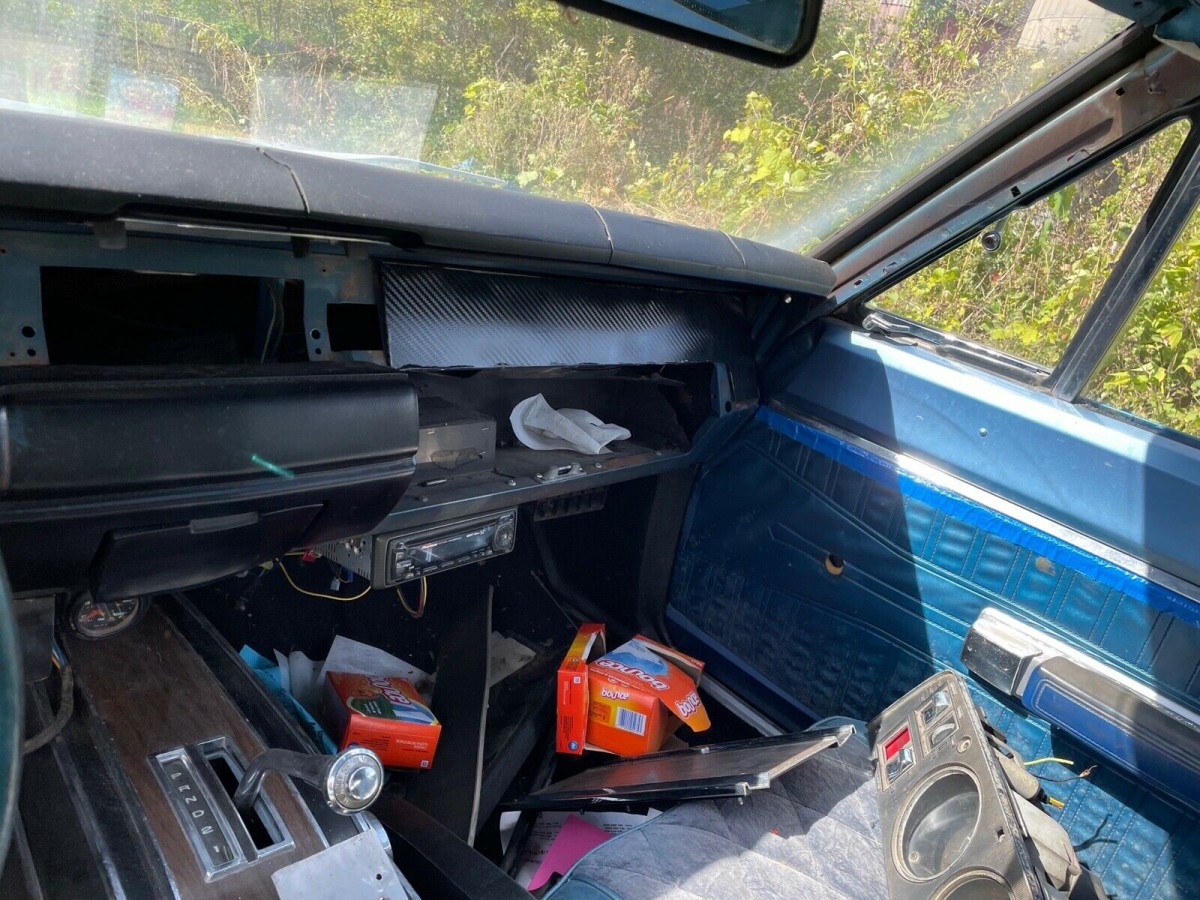 This ’68 Super Bee might best be described as an unfinished project. While the paint and body look good, the blue has likely been redone and we’re told there are patches in the lower rear quarter panels and trunk. While crusty, the frame is said to be good except for the passenger torsion cross member having rusted through and needing repair. The interior is partially torn apart, and a new headliner is included to be installed. The back seat bottom has been pulled out, perhaps in search of a build sheet (which is not mentioned), so we’re unsure of the condition of the upholstery. Power windows are a more recent addition.