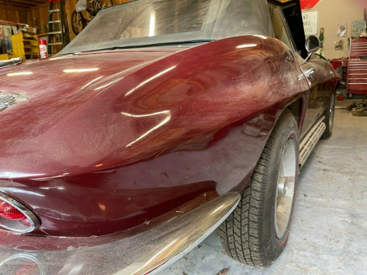 The seller-supplied photos of this Milano Maroon Corvette aren’t the greatest, but they supply some helpful information in the listing. They reveal that the ‘Vette received a low-standard restoration years ago, which probably hasn’t helped its cause. The paint is tired, but the seller is refreshingly candid about the state of the fiberglass. It has numerous cracks and stress marks, suggesting that the buyer will face a complete strip to address those issues if they desire a high standard of finish. We receive no information on potential rust in the frame, but the bidding history suggests that people are willing to roll the dice, hoping there are no rust issues. A few new and secondhand parts will assist the buyer in their quest to complete the project. They include five new Rally wheels, four fresh Firestone tires, a collection of rocker moldings and mounting hardware, and a new Camel soft-top still in the box.