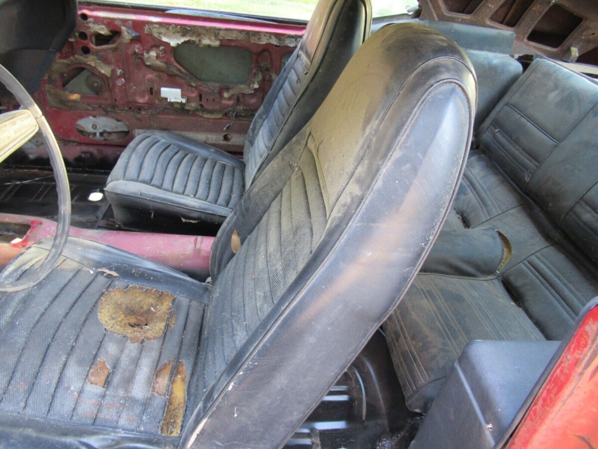 The VIN confirms this was a Mach 1 when it rolled off the assembly line. But the seller has been rebuilding the car using a regular ’70 fastback that was no longer viable. Speculation is that a 351 cubic inch V8 is under the hood, which is the correct displacement also according to the VIN, but whether the motor is original to the car is anyone’s guess. It will turn by hand but that’s about it since a lot of key parts are missing, like the radiator. The transmission is an automatic and the shifter is not installed but available.