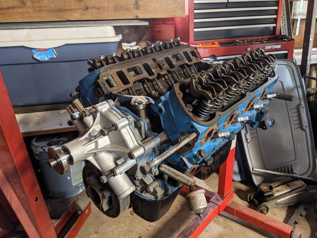 Much of the heavy lifting has already been done relative to the engine which we believe is the H-O 302 cubic inch V8. That work includes new rings, rods and main bearings, oil pan, oil pump, cylinder honing, gaskets, and head bolts. We’re told that it will need a new manifold and have the flywheel installed for which the seller has all the necessary parts. Some other stuff is still in boxes, like a radiator, fan, clutch, and brake components. The convertible top has been patched, so the seller is also provided a new one still in its packaging.