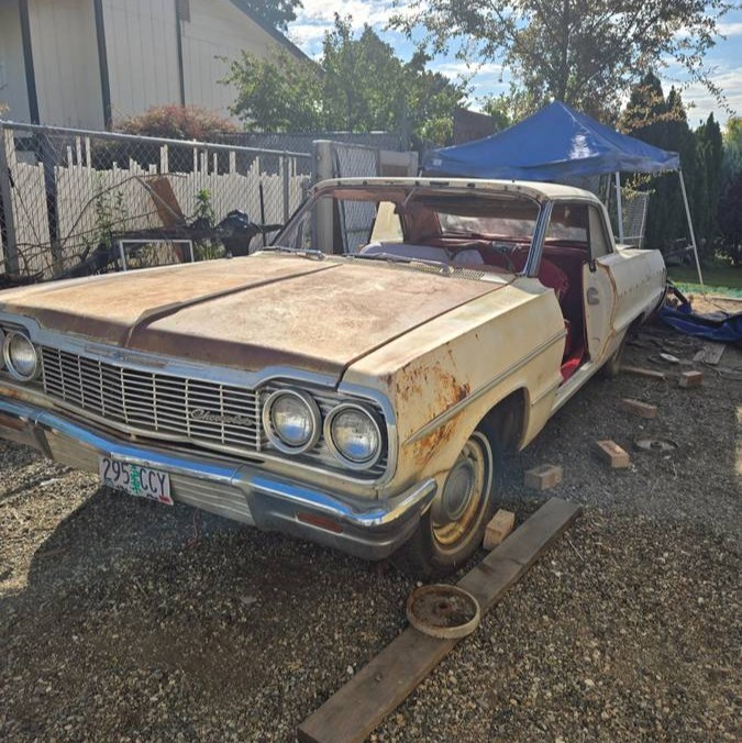 Buyer would want to get this up and check the frame out. Would be curious if the floors were sanded and sprayed prior to the carpet and seats going in? I have owned 2 Impalas with this drivetrain, a 66 Super Sport and 66 convertible and both were very reliable. The panels, bumpers, grille and trim look very straight with mostly surface being the culprit. It took awhile to catch up with the 62’s and 63′ but the 64’s are climbing much higher in value of late.