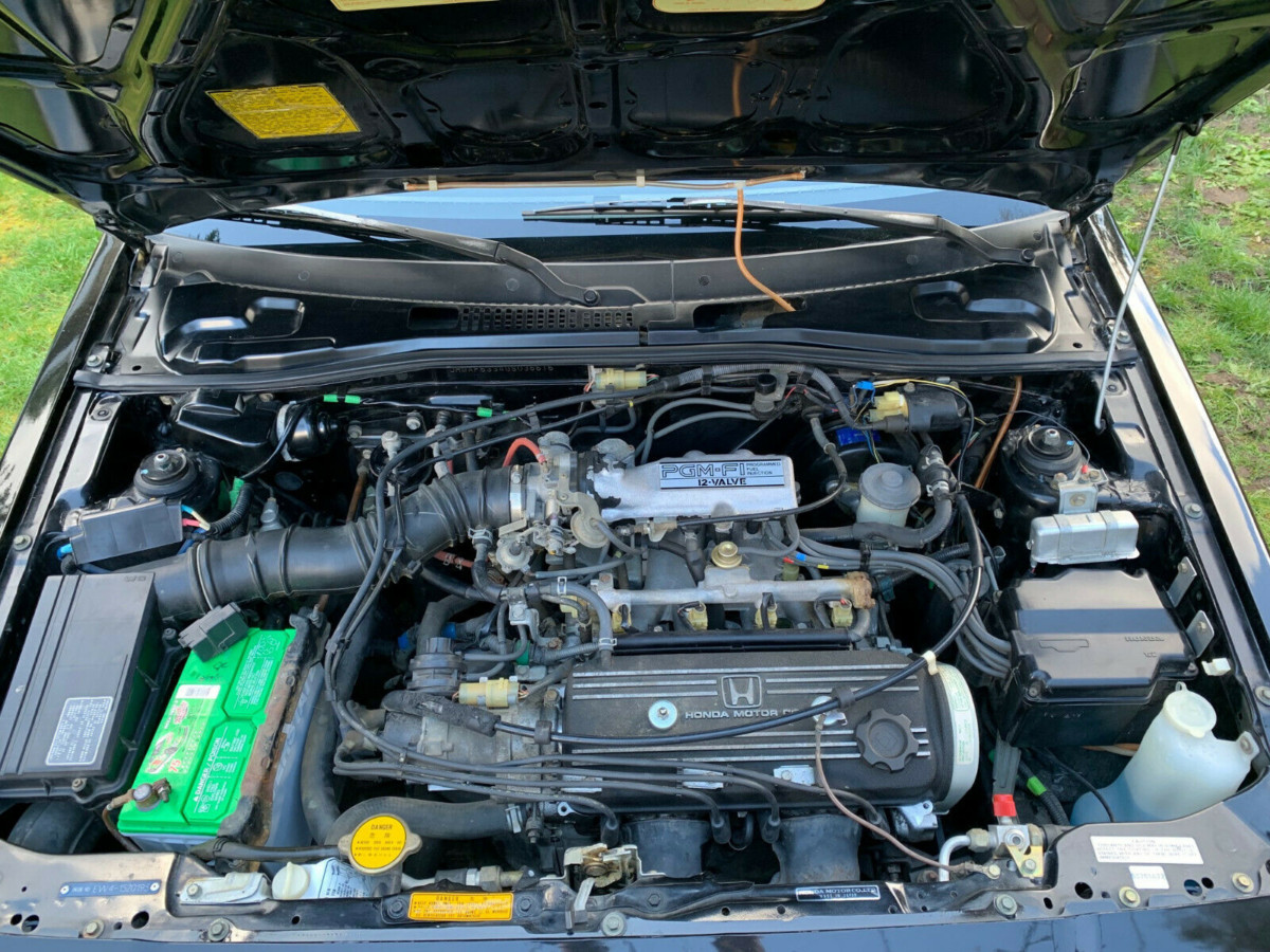 The Si also specific upholstery on the door panels and seats, which is unique to the earlier Si’s. It all appears to be in outstanding condition, indicative of the care the seller claims the long-time original owners lavished on the Honda. The carpets show no sign of soiling and the same goes for the upholstery; dash cracking is rarely a problem for Hondas of this era, and it looks great here along with a factory high-power cassette deck. The seller notes he purchased the car from the original owners who ran a vehicle repair shop and kept extremely detailed records of the CRX’s regular maintenance.