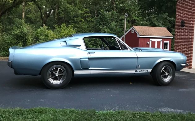 After introducing the GT350 in 1965, Carroll Shelby ramped things up a notch in 1967 when he unveiled the GT500. It was a logical step, because the Mustang’s engine bay could now house bigger V8s than Ford’s legendary 289ci powerplant, so why not push the boundaries? Styling changes loudly and proudly signaled that this was a performance vehicle, wearing a wealth of new fiberglass panels to reduce weight and improve performance. The first owner ordered this GT500 in Brittany Blue, and apart from a few minor touch-ups, it is said to retain its original paint. It shines impressively, and there appear to be no significant cosmetic shortcomings. I see no evidence of rust, while the trim and glass are in good condition. Interestingly, for a car the seller stresses as original, the Marti Report indicates that this Shelby left the factory with the distinctive 10-spoke aluminum wheels, not the ones now fitted to this classic.