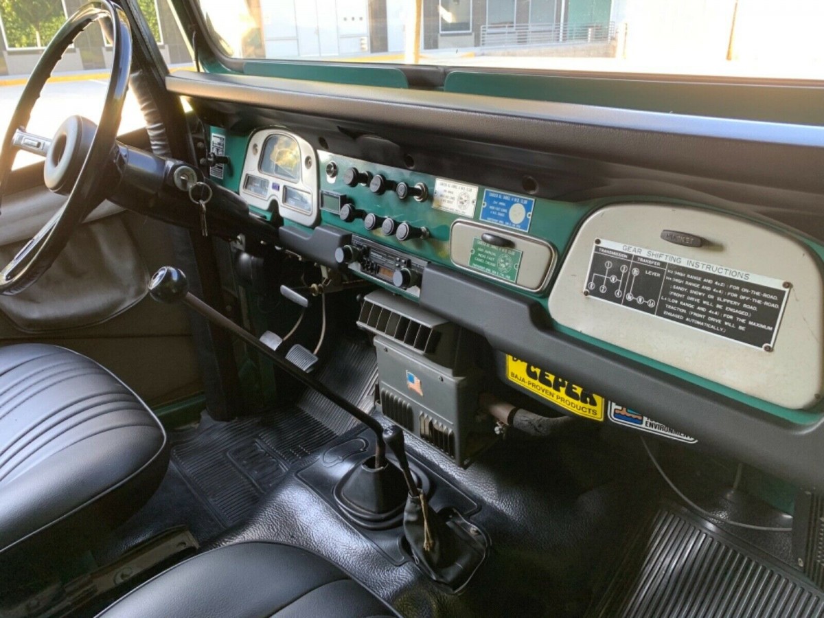 The dash is a timepiece in and of itself, still sporting badges from numerous sojourns with the now-defunt Sareea Al Jamel 4WD Club, which ran an annual “Fast Camel” cruise event in Indio, California. These are the kinds of things that remind you how wonderful vehicles can be, when they unlock access to a club of enthusiasts who make a point of getting together every year to push their cars or trucks to the limit, all in the name of good fun. The interior of this unrestored Land Cruiser remains in exceptional condition, with little in the way of flaws to report. The seller did have the buckets reupholstered, so it’s not completely original, but it also looks quite good. Other improvements include a new bikini summer top and having the roll bar wrapped in custom vinyl padding. The dash remains in outstanding condition, and the same goes for the rubber floor mat.