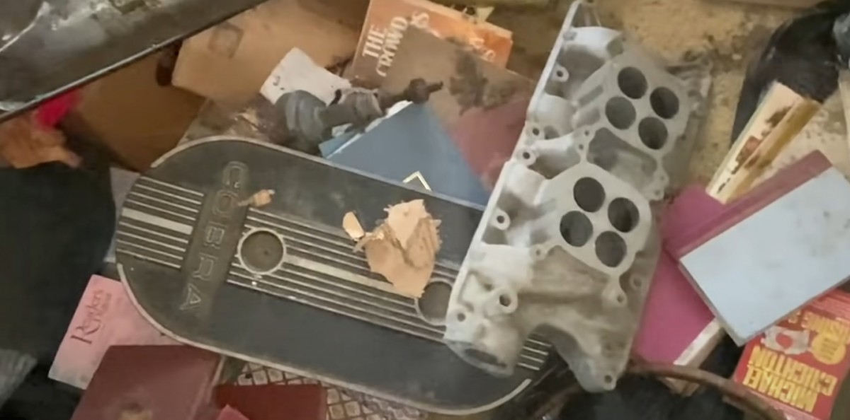As you watch the video, you’ll see the absolutely bonkers way the narrator finds rare parts ranging from high-performance heads to intakes to carburetors to wheels, almost all of them stamped with the Shelby logo. The house doesn’t appear to have been ransacked, because if it had, these pieces would definitely be long gone, along with the cars. But it’s so challenging to otherwise explain how someone who clearly loved Mustangs and knew what the good stuff was could just leave it strewn about on the floors and exposed to the elements, even if they left in a hurry. These are the kinds of rare parts you sock away in a safe place until you need them or otherwise hide from public view – they’re not just tossed on the attic floor.
