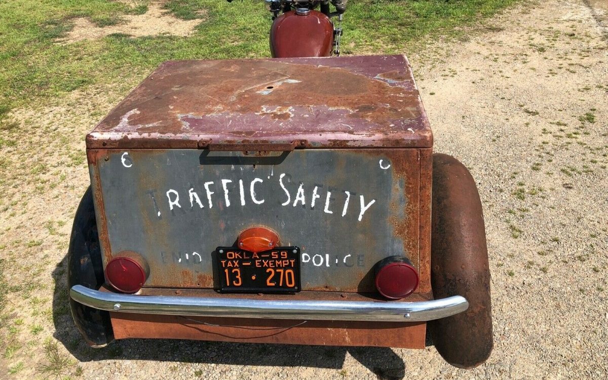 A little history from Enid, OK where I was born & lived the first 8 years of my life. On the corner of Elm & VanBuren, catty-corner from our home; each school-day sat Jerry the cop on, I’d like to think; this particular 3 wheeler. His assignment each day was to oversee the crosswalk as we crossed that intersection and walked to school each day. By ourselves if you can imagine! Jerry was every little kids idol. Tall, nice looking with a mustache, cap on, crisp uniform and a big smile making each kid feel as though he was specifically there for you and only you to send you on to school as safely & quickly as possible, yet still taking time to interact with you and let you climb up on the back of that trike & sit for a few minutes. That trike and the back box area just gleamed without fail. The way Jerry treated & made each of us feel special, had all of us wanting to be, the next; Jerry The Cop! Just for pure nostalgia I would love to have that trike and I would take it back to the way it looked in the early to mid-fifties, black & white & gleaming. Thanks for taking me back in time to relive a wonderful era in my life & remembering when people had Cops for idols. Jerry you’re still remembered!