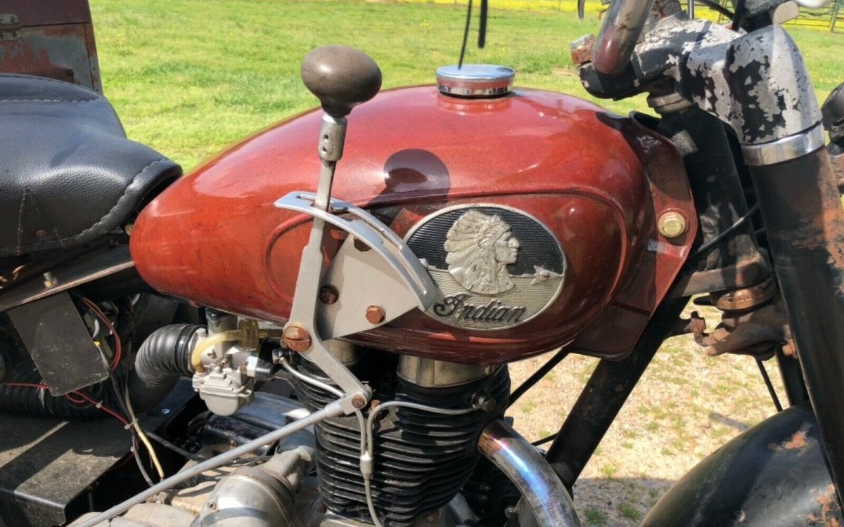Indians have historically had transmissions shifted with an actual stick coming off the side of the tank, and this one is no different. Interestingly, the seller states that the transmission includes a reverse gear, so no more awkward waddling when you try to park it. The mechanicals look alright from afar, as does the saddle and electrics, but buyer beware this is an unrestored custom trike. They do say it runs and shifts good, and I’m inclined to believe them. Buy this and you’ll definitely have something unique, and maybe even–dare I say it–cool.