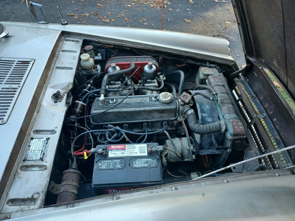 Some sorting required here….. Per the posted video, the engine is unfortunately not hitting on all cylinders and there is a exhaust manifold leak. Some of the gauges are not registering which will require some electrical sleuthing. Rear leaf spring sag indicates a hard life. The pre 67 Fairlady was more desireable with lower cut windshield. To make this a nice driver will require a big checkbook. The current $5K bid is at the top of its value given what we see when looking closely.