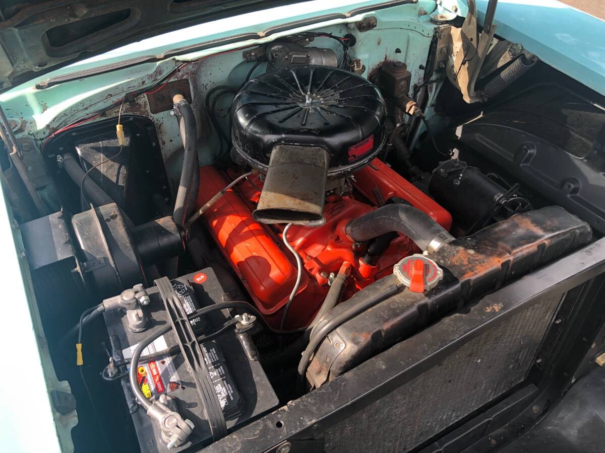 The seller refers to this Bel Air as a barn find, but there’s no evidence to suggest it had to resort to living in one. We’re old the automobile runs and drives well although the odometer is on its second time around. The set-up under the hood is said to be numbers-matching and comes with Chevy’s venerable 2-speed Powerglide automatic transmission. I’m going with paint code 810, India Ivory over Larkspur Blue as the finish this car received on Day One.