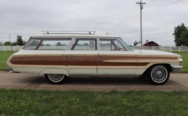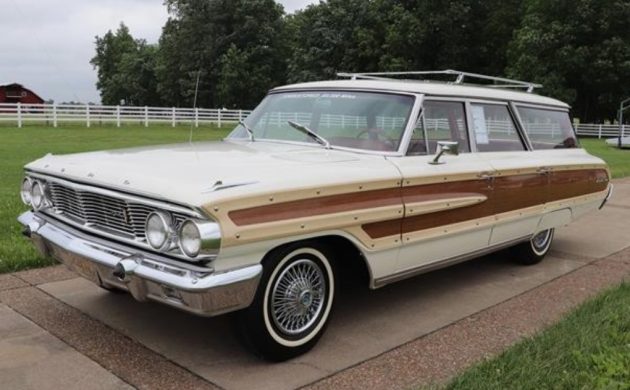 The 1964 model year represented the end of the line for what I have always considered the most attractive Galaxie range. Ford introduced a bold new model the following year with more aggressive styling, but I have always thought 1964 was the high point for the badge. This ’64 Country Squire is a gem, with the seller claiming it’s an unrestored survivor with 60,000 miles on the clock. It isn’t perfect, but the overall condition is consistent with a vehicle that has been treated respectfully for over six decades. The Wimbledon White paint is in good condition, and the faux woodgrain shows no signs of physical damage or significant deterioration. The panels are as straight as an arrow, and there is no sign of rust. The glass and trim are excellent for their age, and the chrome roof rack is a practical feature. I haven’t been able to confirm that the fender skirts are correct, because I have never previously seen a set fitted to a ’64 Country Squire. However, the wheel covers appear to be the correct deluxe “Sport Motif” wire covers featured in that year’s Sales Brochure.