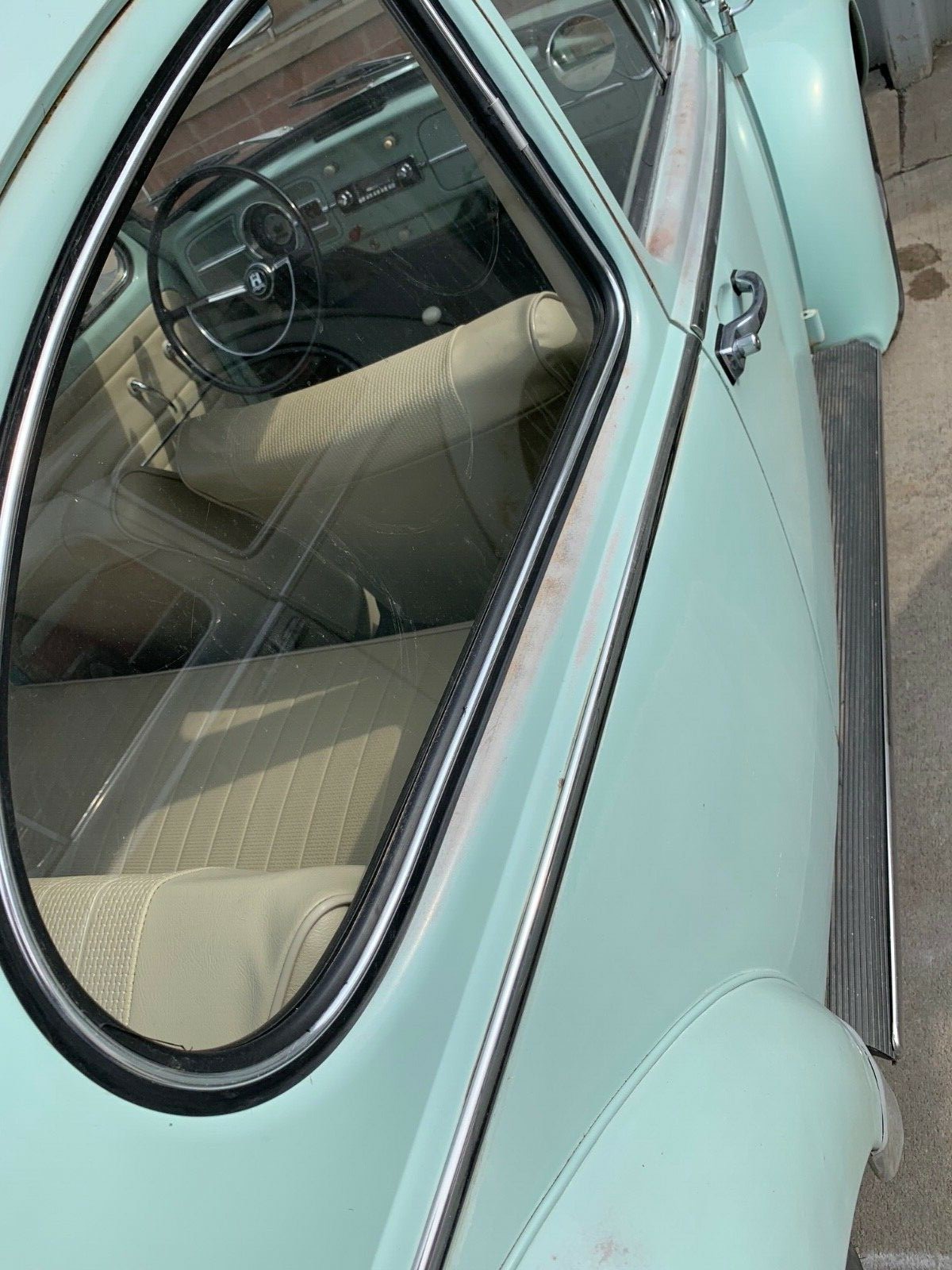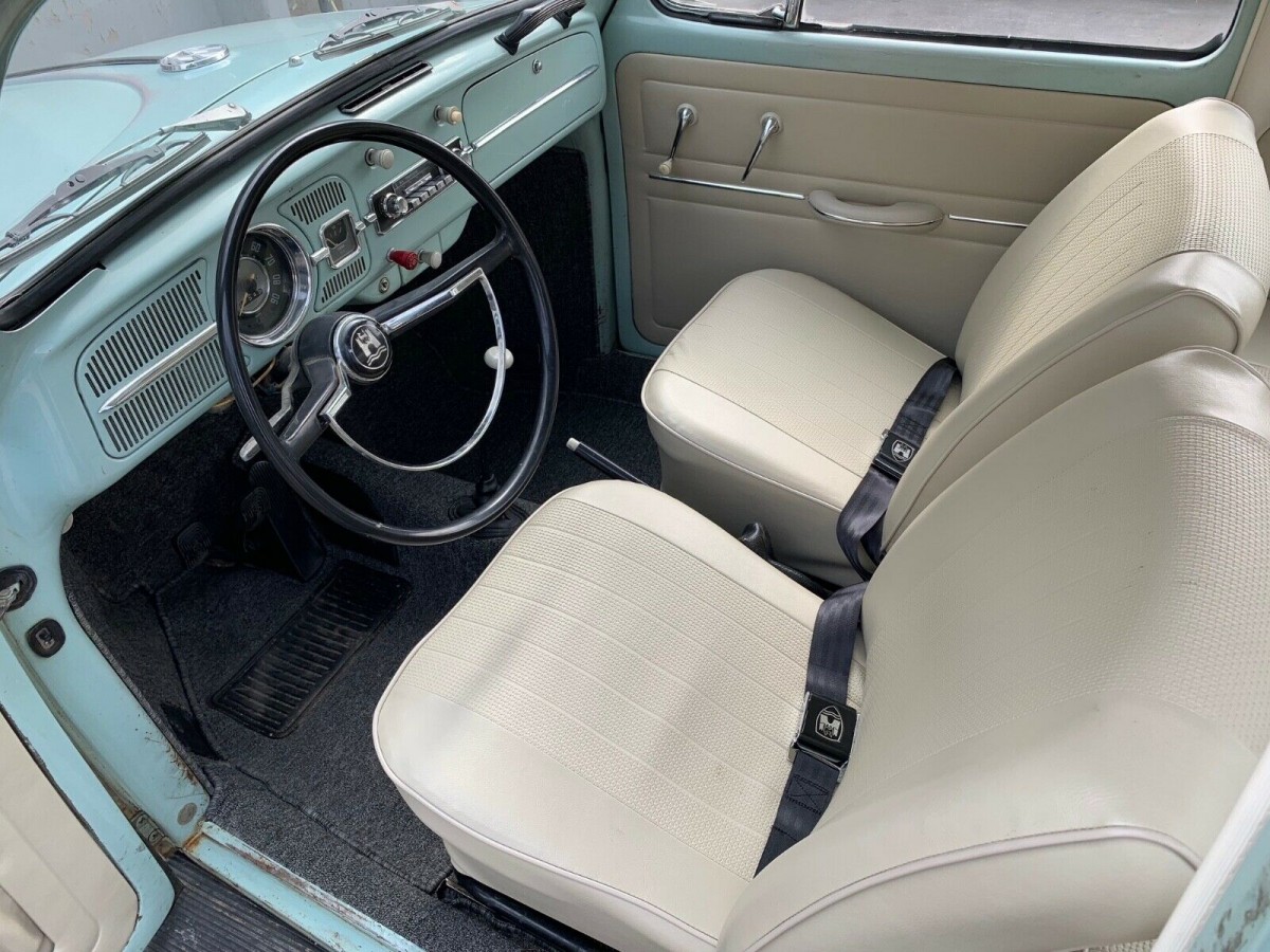 The owner says that the Beetle wears most of its original Bahama Blue paint, and the only issue with it is that it has worn through in a number of spots, as you can see in this photo. The car is free of rust, with the supplied photos of the floors looking nice and clean. All of the trim and chrome is present, and it all looks to be in very good condition, as does the glass. From what we’ve seen so far, this Beetle really does look like a great little survivor.