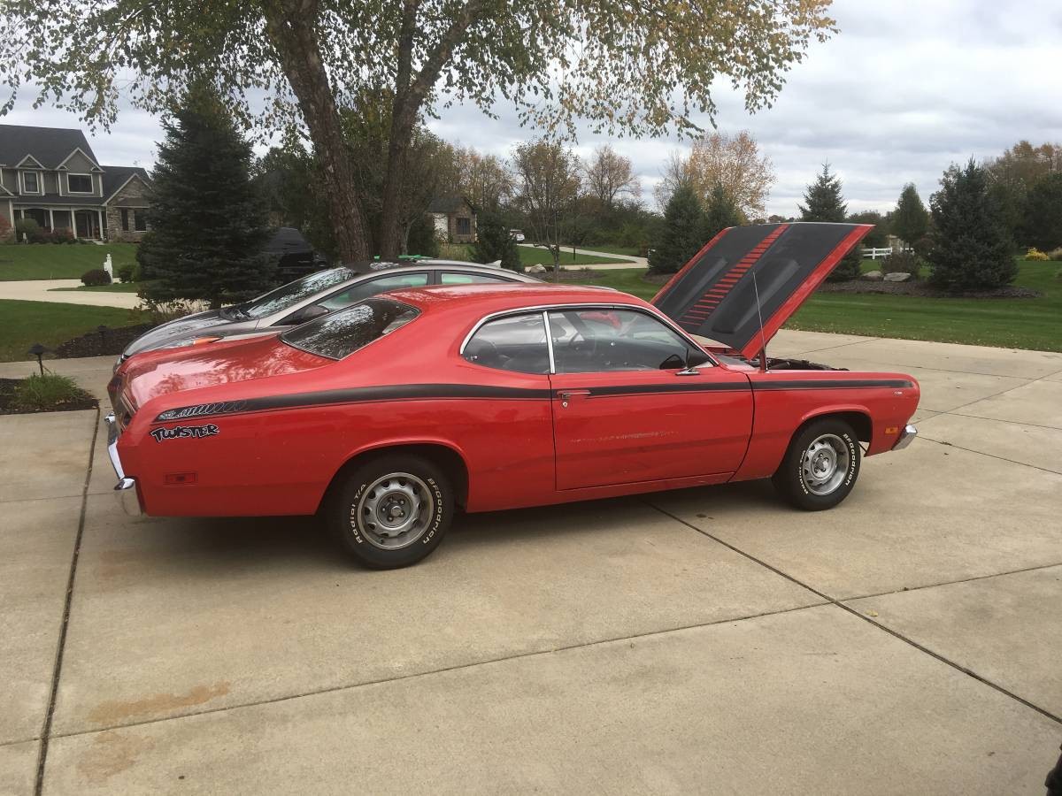 Nice car, but without a 340 4 bbl and a 4 speed, it’s really just a gussied up Valiant. Aside from Twister graphics, someone sure was frugal when ordering this car ( no PS or PB) so that leaves Granny out. Sure looks nice, tho.