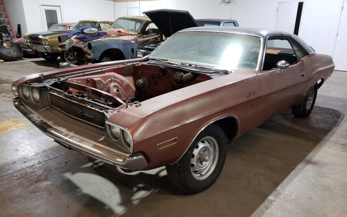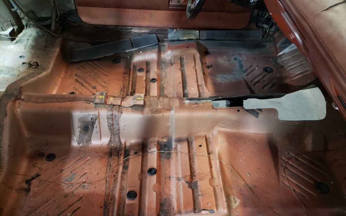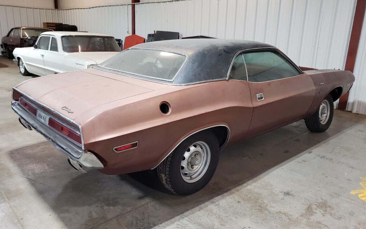 Some good news is the Challenger appears to have a fairly solid body, and the seller has included an additional source that shows about 140 pictures in total, leaving very few areas that remain unseen, so it’s pretty straightforward exactly what you’re getting here. The metal is nowhere near perfect, but most panels appear salvageable, although the passenger side front fender has been replaced. Originally, the car was equipped with a vinyl top, but that’s been removed and the roof is painted black, over all the pitting, adhesive, and whatever was up there, so this area is going to need some attention.