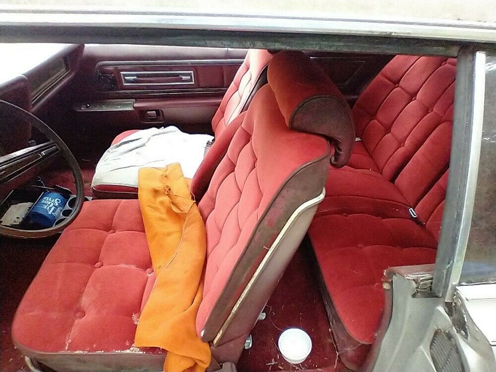 The interior may be in passable condition once you went after it with a steam cleaner. There’s the color red everywhere you look inside, and the seats are made of that velour stuff that you practically sank into when you were driving. The contents and condition of the trunk area are unknown as the key latch is stuck closed. The bigger mystery is the mechanical shape of the automobile as its 460 cubic inch V8 may not have been started in 28 years and will the transmission still go through any of the gears.