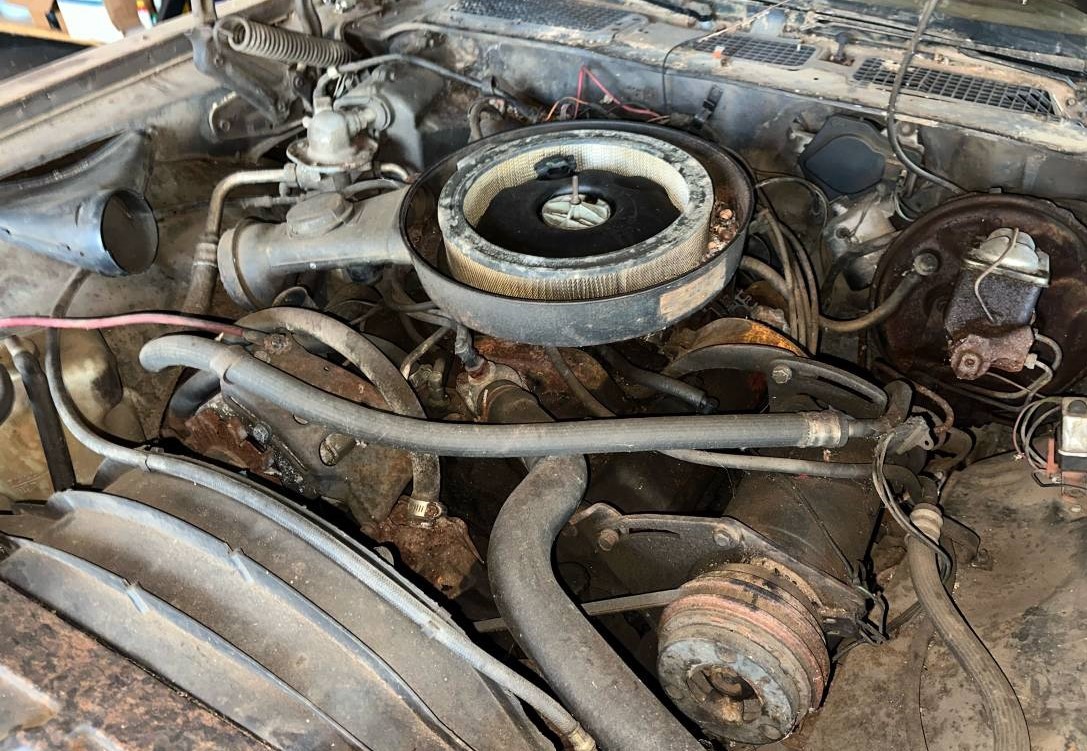 There’s no indication when the Chevy last ran or why it’s up in the air. That suggests a problem occurred at some point with the small block engine, but we don’t know. The seller has made no attempts to get it going. It does have a set of original rally wheels with rings and center caps (not in the photos). We’re not sure about the status of the brown paint and vinyl top but the seller admits there are some rust spots. While cash is always king, the seller would consider a trade for a 1984-88 Toyota 4Runner in good shape.