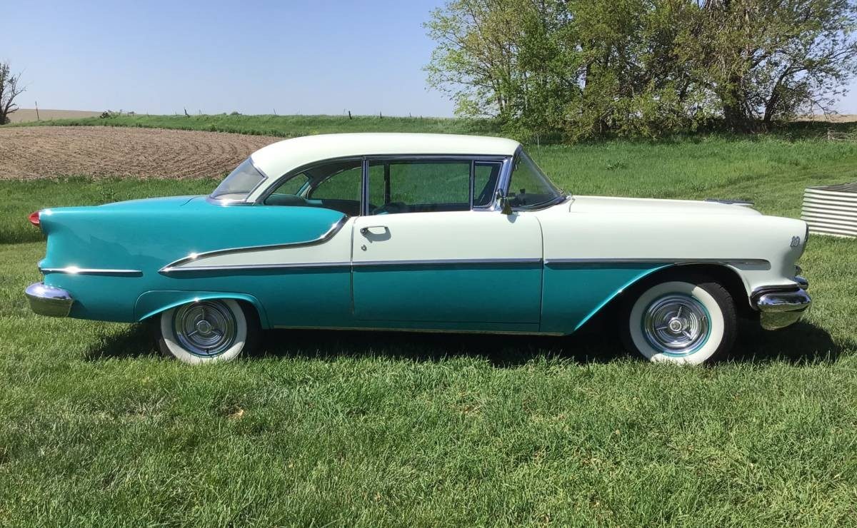 FROM 07/29/25: If one were looking for an automobile to represent the record-setting sales year of 1955, then this Olds 88 Holiday Coupe checks all the boxes. A classic 50’s two-tone color combination (turquoise and white), tasteful styling – especially being a sporty hardtop coupe, just enough chrome trim, a colorful turquoise and white interior, cool wheel covers, and a respectable V8 engine under the hood. The ’55 Olds also checked a lot of boxes for car buyers seventy years ago as a record number – 583,179 units – were sold and earned the division fifth place overall in sales. The 88 Series was the entry level Olds in ’55 and of the 222,361 Series 88’s built, the most popular model was one like we’re featuring here. Nearly 86,000 of these desirable 2-door hardtop Holiday Coupes found new driveways or garages and it’s easy to see why. They were just great looking, comfortable, and peppy cars.