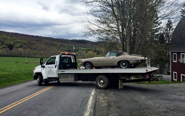 FROM 11/09/2018 – Reader Victor L recently sent us the story of his barn find and it’s a cool one. While it’s not Shelby GT350H, it is a beautiful Jaguar E-Type Roadster! He found this car in a barn in Upstate New York with cardboard covering it back in 2004. The owner was interested in selling it then, but Victor passed as he already had a Jaguar E-Type. Well, over 10 years later and the car was still on his mind. He randomly stopped by to see the car again and ended up buying it!
