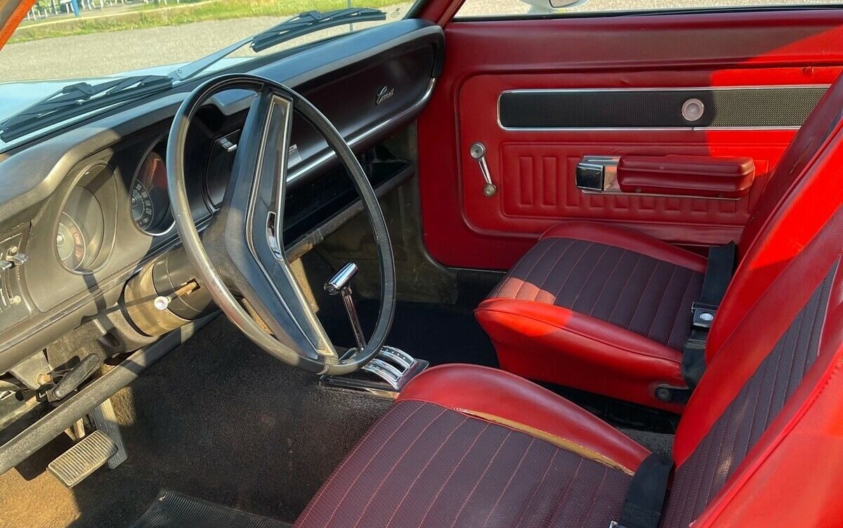 That red interior was tossed in..the dash and carpets should be red too, to match the rest of it. It’s a good enough looking car, “restored” but not to factory.