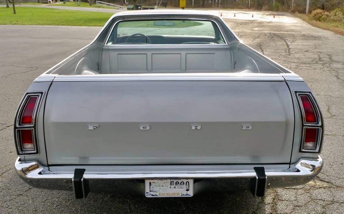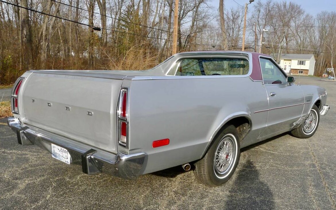 Styling is always subjective and this Ford looks large, it almost seems too large for its station in life but that’s probably more of a visual illusion due to its very creased/formal look. Actually, at 220 inches in length, it is large. There’s nothing to nitpick here, of course – this Ranchero just hasn’t lived the life that usually knocks one of these out after a few years. The only styling miss that I would note is the wire wheel covers, it seems that they would be more appropriate on an LTD II than a Ranchero, but that’s just an arbitrary call.