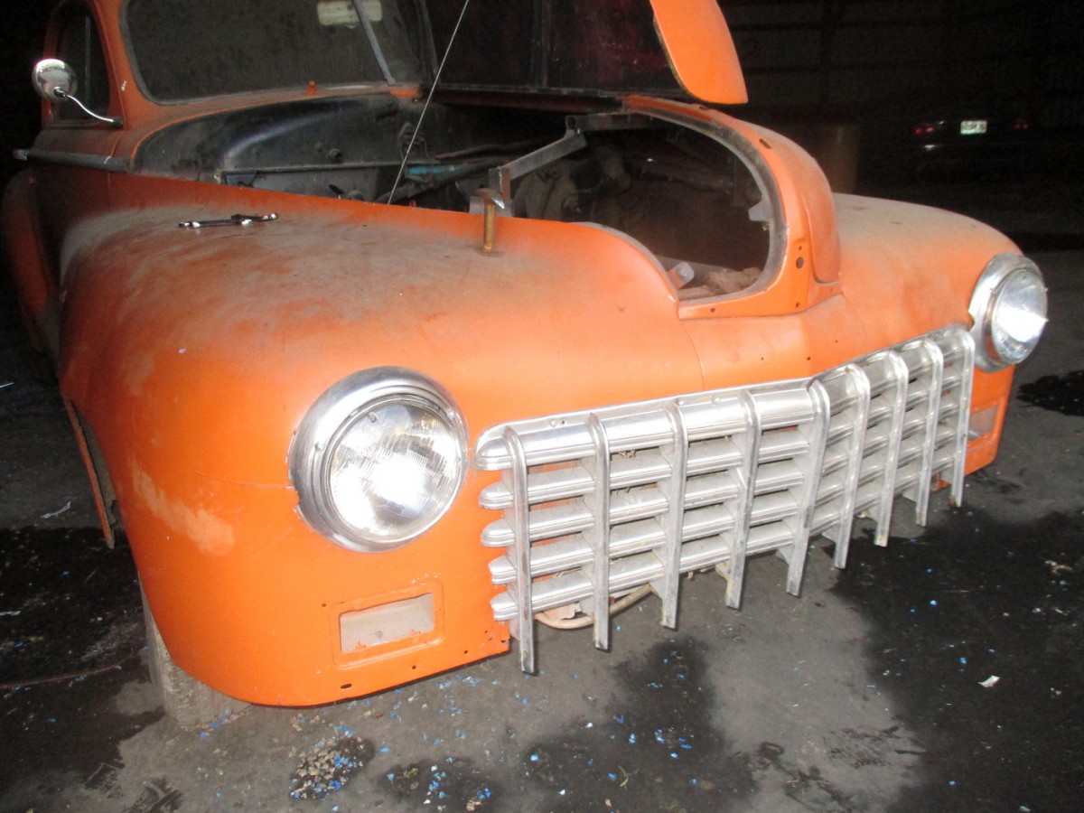 The whole body has been skimmed over, there is definitely black paint underneath the orange, as well as a bluish green, which is most likely the original color. Finding all the parts has been a nightmare so I’ve decided to make my own custom attributes to what it is missing. When the car coming to my possession, there were even more things missing such as the grille and the car had been sanded down on one side and some rust repair taken on. As it stands, this will never be a show car I’m sure, but would be a nice cruiser for somebody once it’s finished. All the glass is there and one of the windows appears to be replaced in the door as it has different markings. We can further discuss the car to determine whether it was yours if you would like.