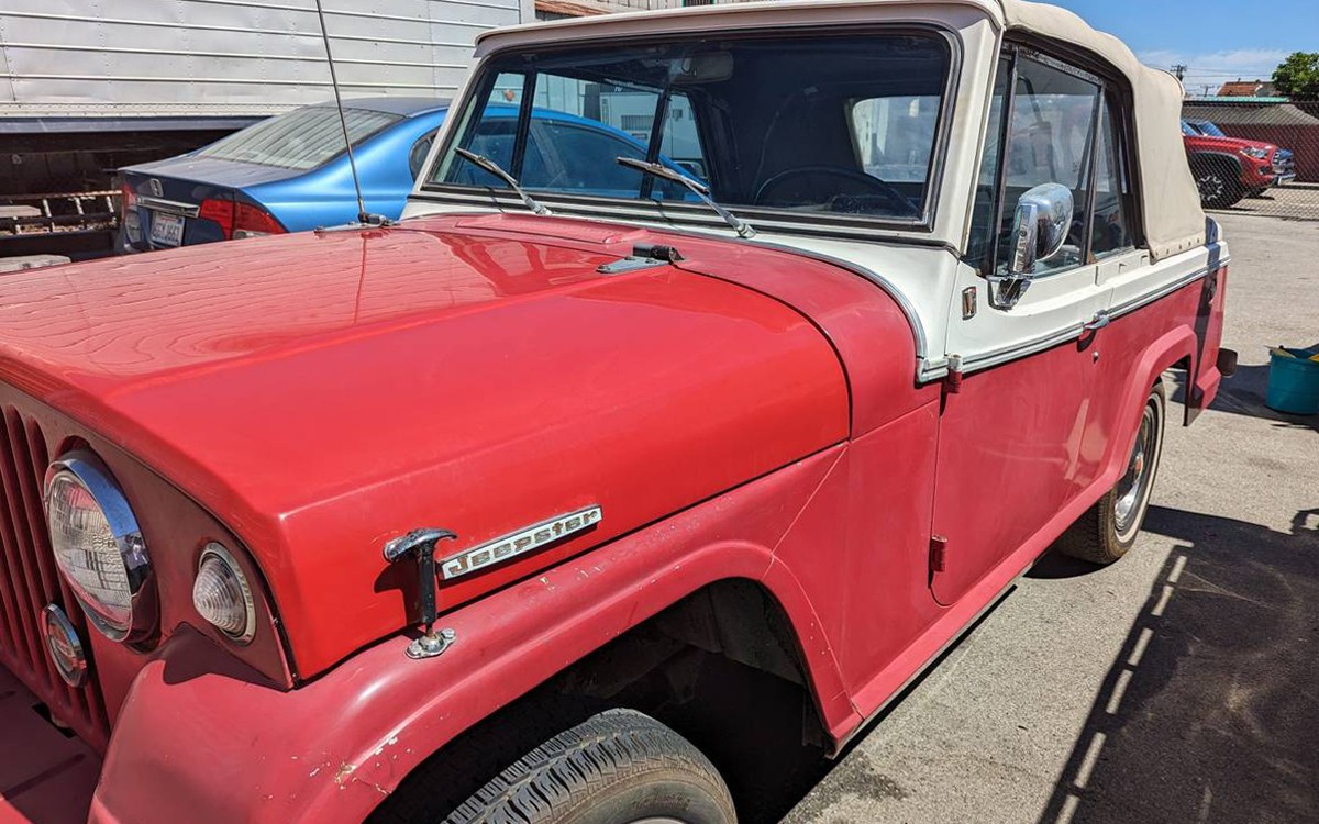 UPDATE – This rare, red-and-white 1967 Jeepster Commando is up for sale again. (I read that only about 2,800 or so of these “deluxe” version Jeepsters with a convertible top, little deck lid, and continental kit were produced.) It was featured last December here on Barn Finds and the seller has lowered the price from $20,000 or best offer to $18,500 or best offer. A big thanks to Barn Finds buddy, numskal, for spotting this listing here on craigslist. But, just like the previous listing, the seller doesn’t provide any photos of the engine which is a real head scratcher. Any thoughts about this low-production fashionable Jeep? I’ve never seen one of these. Have you?