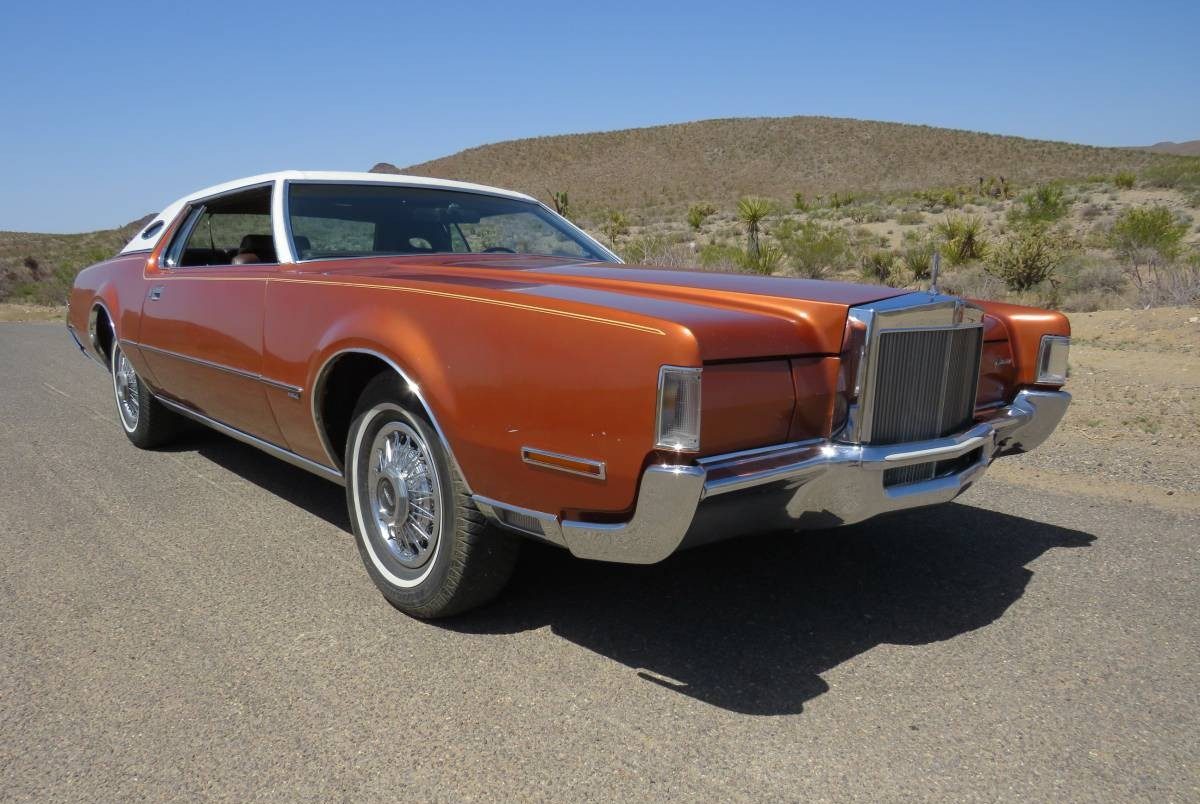 The seller is a person of few words when it comes to advertising copy. All that’s shared with the next owner is: “Starts right up, no funny noises, sounds great, solid heavy car, classy car, best looking of the mark IV before the bumpers changed in 1973. Comes with two sets of keys. Clean NV title. Turnkey car. Drive it anywhere. Great car for the money.” It’s also listed as a “true survivor” without going into any detail. The seller describes the Mark IV’s color as “orange,” but based on a little color chart research, I’m guessing it’s actually Copper Moondust Iridescent. Is that a great name or what? The Lincoln team was really into moondust that year because eight colors had moondust in their name. Based on the photos, the paint looks very presentable as does all the bright stuff, trim, glass, as well as the white vinyl top with the iconic opera window (based on what I could find, the opera window and cornering lights were optional equipment in ’72).