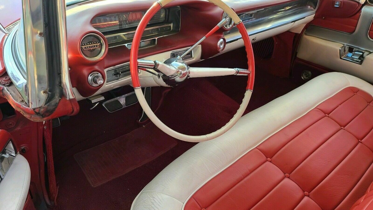 At 5.030lbs, the Eldorado is one heavy piece of equipment. That means that it needs something impressive under the hood if progress is going to be anything beyond glacial. Cadillac was up for that challenge, and what we find occupying the engine bay is a 390ci Tri-Power V8 that pumped out 345hp in its prime. Standard equipment also included the 4-speed Hydramatic transmission, power steering, and power brakes. The Cadillac might have been a heavy car with a firm focus on luxury, but it was still capable of delivering a ¼-mile ET of 17.3 seconds. There are plenty of modern vehicles with luxury credentials that can beat that time today, but there weren’t many that could hold a candle to the Eldorado in 1959. Considering this car’s recent history, the engine bay presents surprisingly well. There is some accumulated dust, but there’s no grease or grime and no evidence of corroded components. The owner has managed to coax the V8 back to life, saying that it starts easily and runs well. It isn’t clear whether this Caddy is roadworthy, but the indications to this point look highly positive.