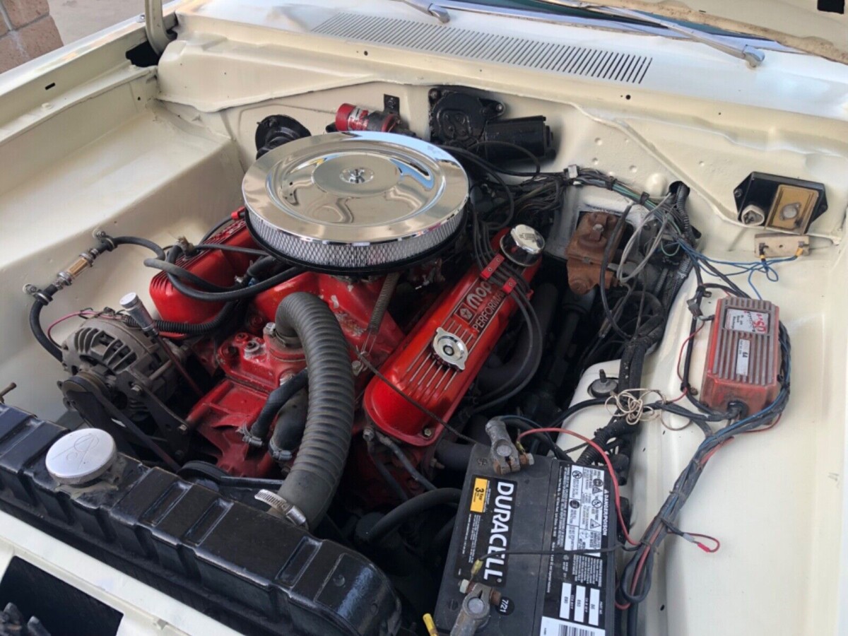 This Dart’s interior is tidy and serviceable, but some attention could lift the presentation significantly higher. The aftermarket cloth seatcovers exhibit wear, and the headliner is wrinkled on the rear sail panels, but the remaining upholstered surfaces are free from physical damage. Replacement seatcovers in the correct material would leave little change from $1,000, but the improvement from this investment would be profound. The dash and pad are excellent, but the factory radio is missing. The original owner ordered the car with bucket seats, a console, and a floor shifter. These combine to provide a classy appearance that would still turn heads today. The seller mounted some gauges under the dash, which are a worthwhile addition when we examine what hides under the hood.