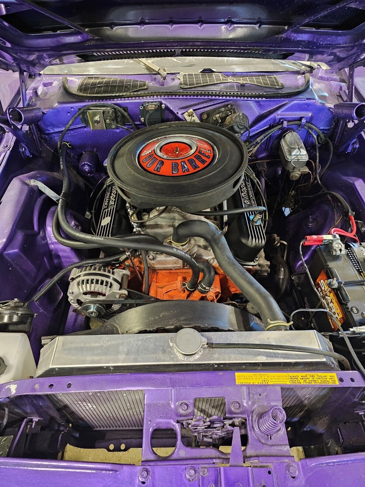 This Challenger is about more than good looks because it features its share of muscle. The engine bay houses a 340ci V8 that should produce at least 275hp and 340 ft/lbs of torque. That power feeds through a four-speed manual transmission to a 3.55 Sure Grip rear end, with power steering lowering the driver’s workload. A ¼-mile ET of 15 seconds was there for the taking when this car was new, but recent upgrades may shave a few tenths from that figure. The V8 received a comprehensive rebuild, including a 0.060″ overbore. Flat-top 10:1 pistons, an upgraded camshaft, and new lifters were dropped in. The engine inhales deeply through an Edelbrock carburetor and high-rise intake, while spent gases exit via a custom stainless exhaust. A new clutch was added, and the aluminum radiator should keep things cool. The seller states the car is in excellent mechanical health, running and driving perfectly. It will happily drink pump gas and is a turnkey proposition for its new owner.
