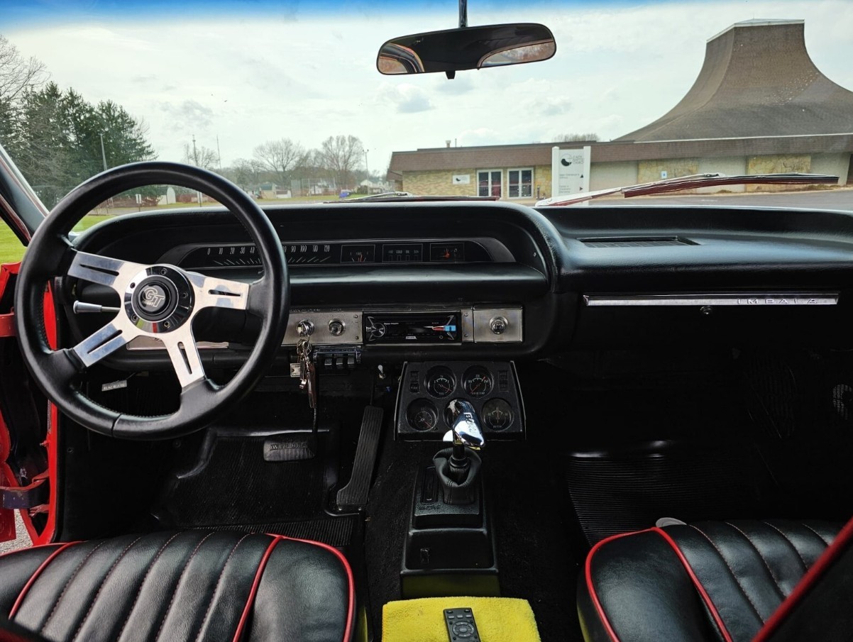 The seller didn’t restrict their custom touches to this Impala’s exterior, with the interior receiving an equal amount of attention. From the custom Black trim with contrasting Red highlights that tie the interior and exterior together effectively, to the gauge cluster hanging below the dash, there’s a lot to like. There is no evidence of wear or abuse, and no signs of UV impact. Beyond the trim and gauges, other upgrades include a chunky Grant sports wheel, a B&M shifter, and a modern Kenwood CD/DVD stereo with a range of hidden speakers and subwoofers, while the radio receives its signal via a pair of rear-mounted power antennas.