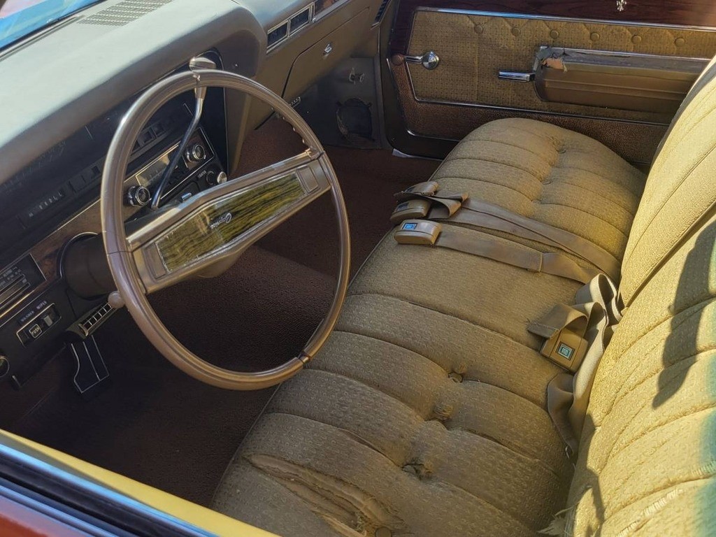The Caprice’s interior is tidy and serviceable, although there are a few cosmetic shortcomings for potential buyers to consider. The kick panels are missing, the front seatcover is torn, and the front armrests show deterioration. However, finding replacements for these items shouldn’t be difficult and, if the buyer wished to throw caution to the wind, they could invest $900 in a complete seatcover set in the correct material and color. Functionally, the air conditioning is inoperative, but it appears that the remaining features, including the under-dash 8-track player, work as they should.
