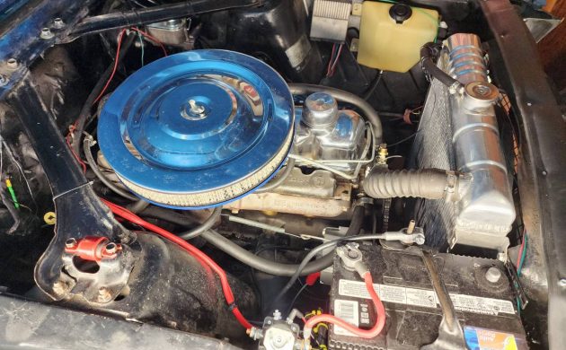 Not all vintage cars have to be pristine classics. This Mustang isn’t perfect, but it looks pretty good, and investments have been made in its mechanical health at 140,000 miles. The I-6 is newly rebuilt with lots of extras, and the tranny was redone three years ago. An oversized radiator is there along with an electric cooling fan. The ignition has been converted to electronic, but the original parts have been saved. Brake work was also done, and the gas tank was replaced.
