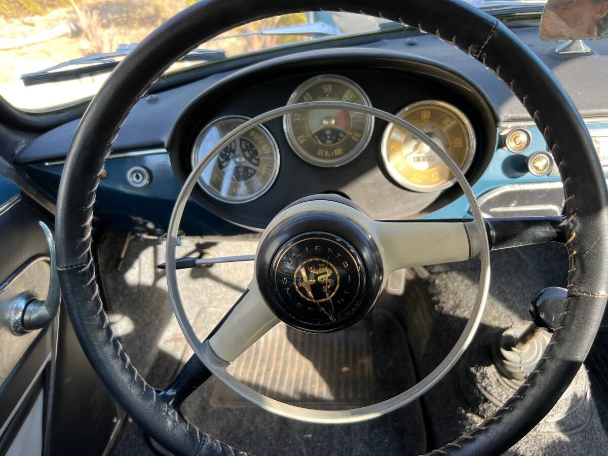 The seller doesn’t supply engine photos, but they provide plenty of information on its mechanical specifications. The Giulietta Normale usually features a 1,290cc twin-cam four that sends 61hp to the rear wheels via a four-speed manual transmission. That combination doesn’t equate to lightning performance, but with a curb weight of 1,940 lbs, it would normally cope with the cut and thrust of city traffic while cruising effortlessly all day at highway speeds. The story is slightly better with this Giulietta because its engine received more aggressive camshafts and headers designed for the Veloce version. It inhales deeply via dual Weber downdraft carburetors, which should put 100hp within this classic’s reach and push the top speed beyond 100mph. The seller improved things further by adding electronic ignition, new Pirelli tires, a new braking system from end to end, and an external oil radiator and filter to keep this baby running cool. While they don’t expressly state it, the impression is that this Alfa is a turnkey proposition for its new owner.