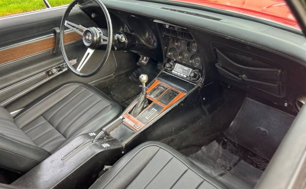The 1972 model year marked the end of an era, and it wasn’t merely because it was the last where the Corvette wore chrome front bumpers. The vacuum-operated wiper door was destined for replacement, and buyers only had until the year’s end to order their Coupe with the removable rear window. The first owner ordered this ’72 in Mille Miglia Red, a color chosen by 2,478 buyers during that model year. That placed it about mid-range on the Corvette’s palette of ten colors, meaning that it probably adds little to the rarity of this classic. There is no mention of a previous reputation, and if this is a survivor, it has apparently led a fairly sheltered life. The paint shines nicely, the fiberglass is in good order, and there is no mention or evidence of rust. This package is rounded out by crisp glass and trim, and Rally wheels that are in good order.