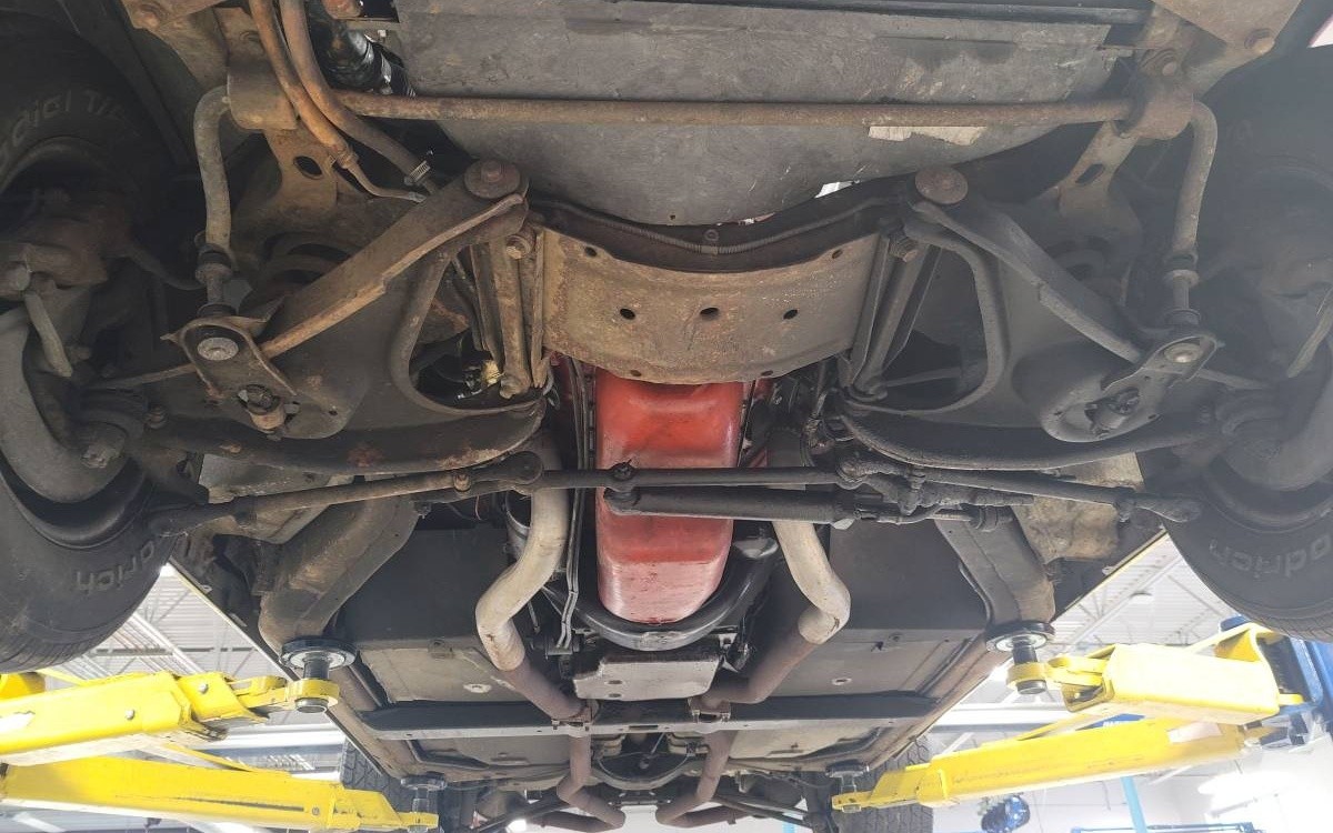 The number of photos showing the underside of the car is impressive, and clearly show that there are no rust issues underneath and that the frame is in good condition. Everything looks nice and dry on the bottom side with no apparent fluid leaks and nothing to be obviously concerned about. While the exhaust system doesn’t look like new, it does appear to be in good shape, as do the front-end components.