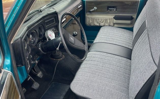 The first owner ordered this C10 with the 350ci V8, a four-speed manual transmission, and power steering. The company’s Sales Brochure quotes power and torque figures of 155hp and 255 ft/lbs for the small-block, with both figures now irrelevant in the face of recent changes. The 350 is a distant memory, with the space occupied by a 400ci V8 with a “509” block casting. The seller states that this engine pumps out 350hp, although they don’t indicate whether this figure was verified by documentation or dyno testing. Other additions include a new clutch and a dual exhaust. The seller states that this Pickup runs and drives extremely well, including an embedded video in their listing to support claims of its excellent health. We hear the 400 running, and it sounds as sweet as a nut. It appears that flying in and driving home is a realistic expectation for the buyer to have.