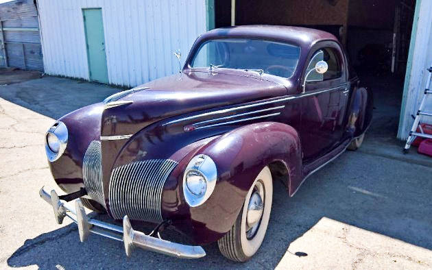Looks like it’s got ’40 Ford headlights installed to be able to take sealed beam bulbs, and the original ’39 bezels in the car.