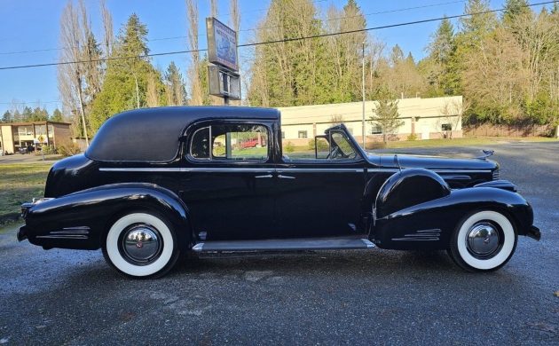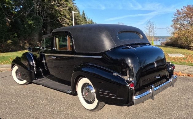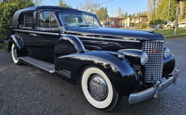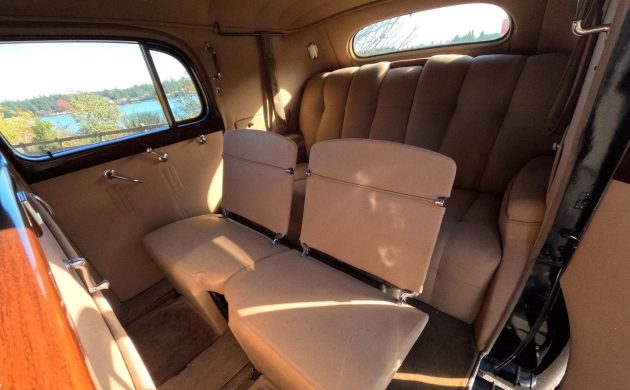 This one’s not only beautiful but also quite rare, as only 514 Series 90s were built during its three years of production, from 1938 to 1940. According to the seller, of that number, just 18 were of the seven-passenger town car design like this car, known as style #9053. One of my favorite features is the removable roof section up front, but that’s only one of the many fine attributes here, with others including the suicide doors, fender-mounted spare tire covers, and the Winged Goddess hood ornament, which also serves as a latch.