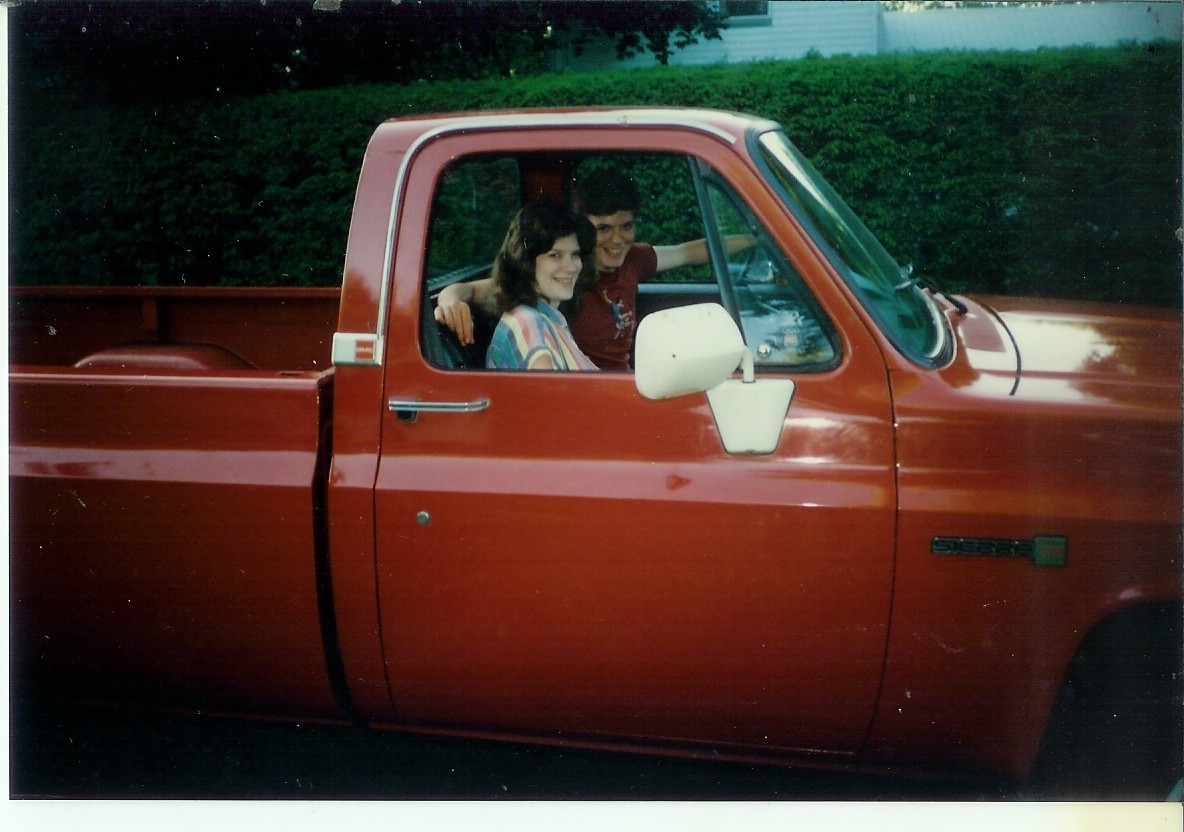 This is my Dads truck I was talking about. Taken in the late 80’s. I had just polished it. My sister is in the cab with me. She had been in an accident and needed to use a wheelchair and could get around with a walker a little bit. It took some doing ( I had to pick her up to get her in the cab). I took her for a joy ride and an ice cream cone. She passed away in 2002. It was a fun day. That thing had a 350 with a 4 speed. I drove her all around town. She had a grin on her face from ear to ear the entire time.