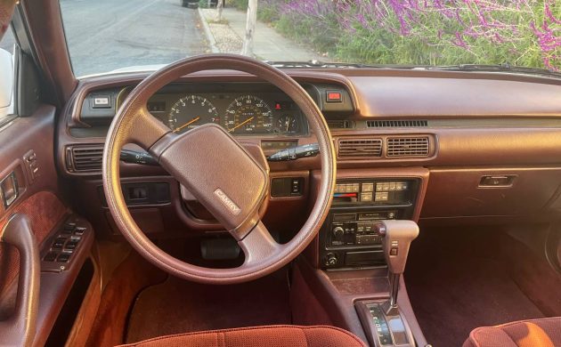 Now, the seller makes a bit of a mistake in calling this a 4WD model. The V6 – which it definitely has – was not possible to pair with the all-wheel drive system known as All-Trac. That would have been a cool find, as Toyota actually offered this generation of the Camry with a manual and the All-Trac system, but I’m guessing there’s only a handful of those trims left in existence. In terms of equipment, the second generation Camrys were a big step forward over the humble first few years of the model in the U.S., which you can clearly see with the clean dash design, upgraded factory stereo, full power options, and premium cloth trim.
