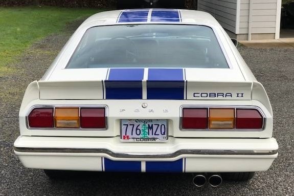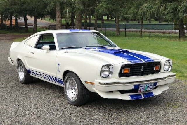The Cobra II offered no boost in performance but aided greatly in making the car look badass. It was intended to remind buyers of the 1960s Shelby Mustangs. Ford contracted with Motortown Corp. to convert some of its Mustang hatchbacks into the Cobra II. That transformation included wide-length stripes on the upward-facing portions of the car along with the sides, front and rear spoilers, rear quarter window louvers, fake hood scoop, and styled steel wheels. The Cobra II package only came in white w/blue stripes, blue w/white stripes, and black w/gold stripes. More than 25,000 of the cars were sold in 1976, many of them painted like the seller’s Mustang.