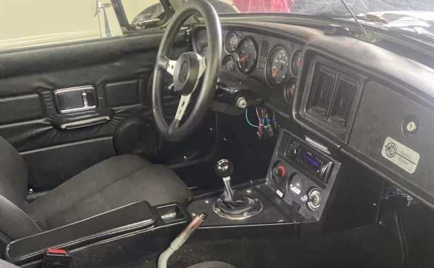 As mentioned earlier, this “B” was originally powered by a 63 net HP, 1.8-liter, in-line four-cylinder engine – no great shakes. In what I consider to be a surprise selection, the engine room is now occupied by a thoroughly rebuilt and modified 140 net HP, GM 3.1-liter V6 that originally held court under the hood of a ’92 Chevrolet Camaro. Along with the GM engine went its rebuilt Borg Warner T5, five-speed manual gearbox. In stock form, we’re looking at a power increase of 128% but that excludes the transplant’s mods, such as an aluminum intake manifold and a 390 CFM four-barrel carburetor. There’s no description of running and driving attributes, but I have to imagine that this 2,400 lb. two-seater moves with aplomb. As for handling? Hard to say if there’s any understeer owing to the heavier engine – that’s a question that would have to be posed to the seller.