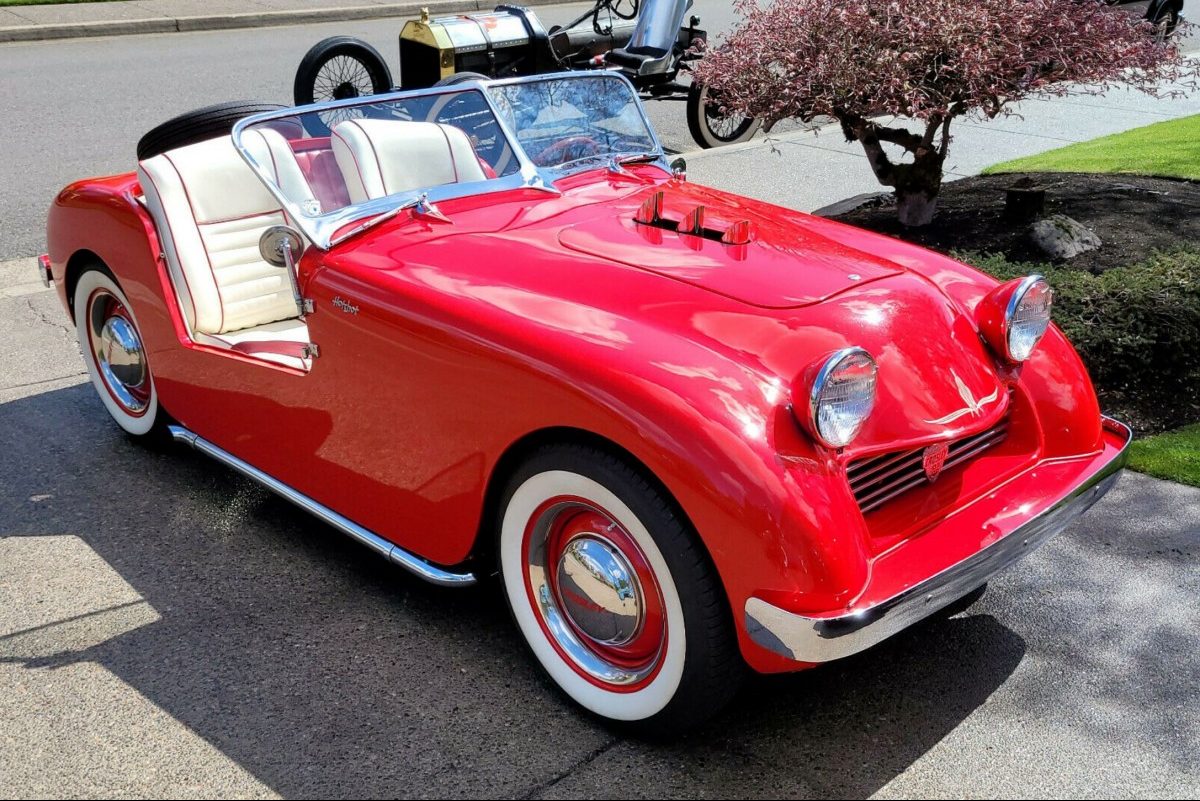 The Hotshot’s interior presentation matches the rest of the car, making it difficult to fault. It features custom upholstery in Ivory, with contrasting Red piping and carpet. The dash is also a custom item that features its original and recalibrated gauges supplemented by aftermarket gauges hidden in the glove compartment. A period-correct radio provides entertainment on the move, with speakers flush-mounted behind the seats. If I were to mark this interior harshly on any aspect, it would be the seller’s choice of shifter knob. Considering the classy presentation of this build, an eightball looks out of place. If I were to buy this classic, that would probably be the only thing I would change. I think that a leather-wrapped knob would be more appropriate in this Crosley.