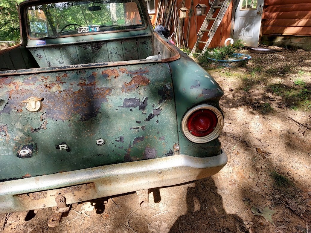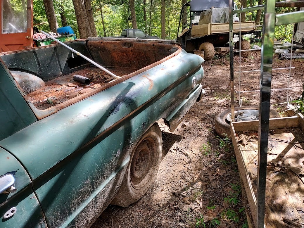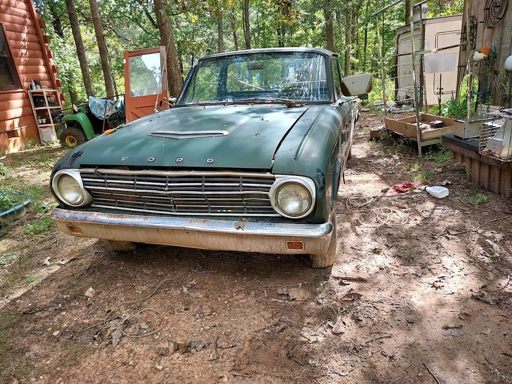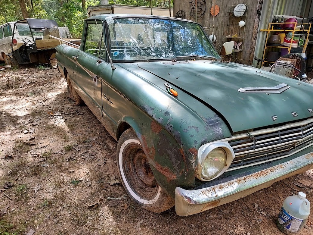 This is yet another find from the property in North Georgia that I am helping to clean out. As you may recall, we’ve featured a variety of posts over the years with vehicles from this collection, and many of them have found new homes thanks to you. This is the latest project we were able to dig out, and it was surprisingly good news once uncovered. This 1963 Ford Falcon Ranchero is a genuine V8 truck, right down to the five lug wheels, with three on the tree and minimal rust. It runs and drives well and sounds healthy as heck, needing only minor sorting to get it running again. The Ford is located near Blue Ridge, Georgia, and you can contact me directly using the form below for more information or to set up a time to view.